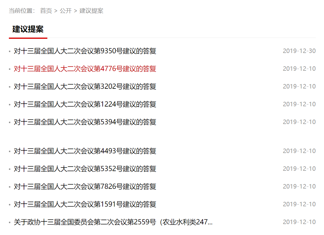十二是加強人大、政協提案信息公開。認真做好全國人大代表和全國政協委員提案辦理結果公開工作,在印發的建議提案辦理工作通知中明確要求按照“積極穩妥、逐步深化”原則,對于涉及公共利益、公眾權益、社會關切及需要社會廣泛知曉的建議和提案辦理復文,應當公開全文或以摘要公開的形式予以公開。2019年共公開建議提案656件,其中全文公開425件,摘要公開127件。
