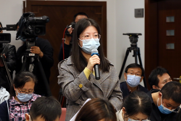 2020年10月21日(周三)上午10時,農業農村部新聞辦公室舉行新聞發布會,介紹2020年前三季度農業農村經濟形勢,并回答記者提問,圖為人民日報記者提問。農業農村部網站 叢琳攝