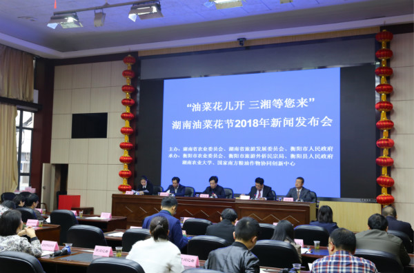 3月13日下午,湖南省農委組織召開了2018年湖南油菜花節新聞發布會,湖南省農委副主任鄒永霞發布了相關內容,湖南省農委副巡視員羅振新主持發布會,衡陽市政府辦公室副主任周湘暉、衡陽縣委常委、宣傳部長賀暢出席發布會。新華社、中新社、湖南日報、湖南經視、農民日報、紅網、湖南科技報、騰訊大湘網、三湘都市報等媒體記者參加發布會,取得了較好的社會反響。