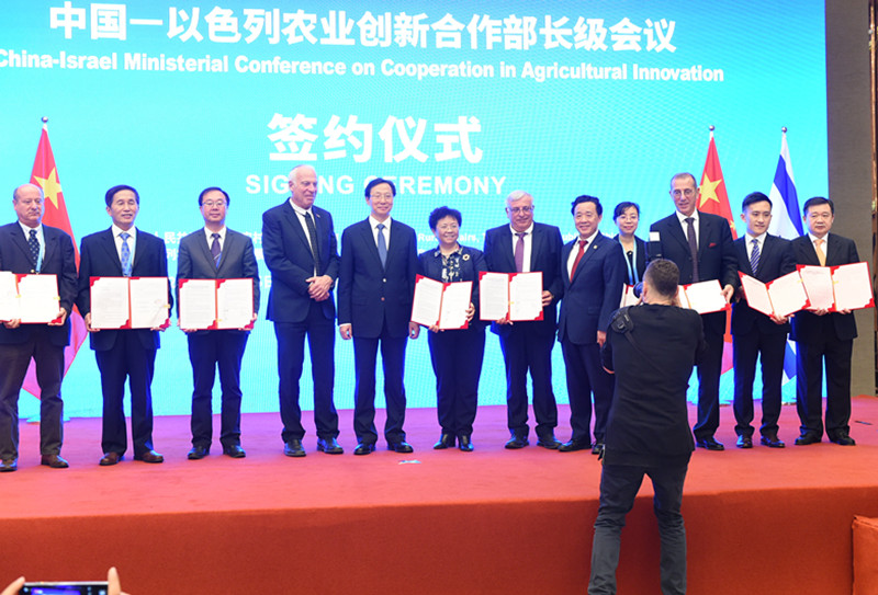會(huì)議期間,韓長(zhǎng)賦與烏里·阿里埃勒進(jìn)行了雙邊會(huì)見(jiàn),就科研與產(chǎn)業(yè)合作、農(nóng)業(yè)生物技術(shù)、漁業(yè)技術(shù)合作、人員交流等交換意見(jiàn)并達(dá)成了多項(xiàng)共識(shí)。舉辦了中以企業(yè)對(duì)接會(huì),宣介中以綠色生態(tài)產(chǎn)業(yè)園(甘肅酒泉)項(xiàng)目,19家企業(yè)現(xiàn)場(chǎng)展示,75家企業(yè)參與對(duì)接。雙方簽署了關(guān)于開(kāi)展奶業(yè)技術(shù)合作、農(nóng)業(yè)培訓(xùn)、共建農(nóng)業(yè)創(chuàng)新中心、農(nóng)業(yè)創(chuàng)新園區(qū)等4個(gè)協(xié)議。召開(kāi)了“一帶一路”框架下中以農(nóng)業(yè)合作、中以農(nóng)業(yè)科技合作、中以農(nóng)業(yè)人力資源合作等3個(gè)專(zhuān)題論壇。