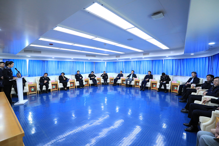 與會(huì)領(lǐng)導(dǎo)聽取南京市長(zhǎng)江禁漁聯(lián)動(dòng)執(zhí)法中心工作匯報(bào)