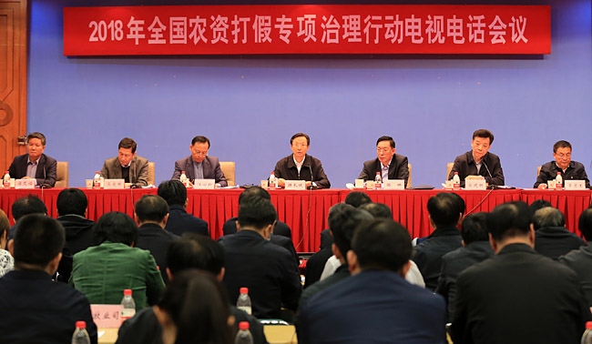 農業農村部黨組成員宋建朝主持會議,總農藝師馬愛國公布了2017年農資打假十大典型案件。國家市場監督管理總局、公安部分別對各自領域農資打假工作進行了專題部署。湖北省農業廳、河南省工商行政管理局、遼寧省公安廳作典型發言。