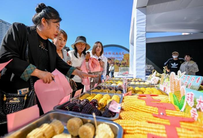 9月22日,評委們對各類玉米進行評比。