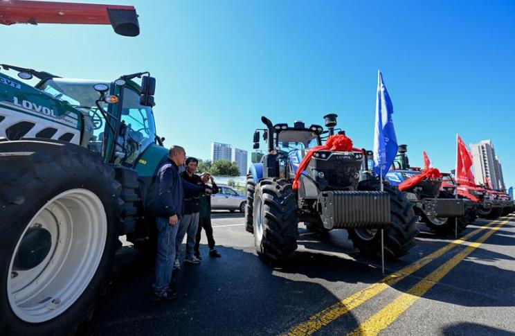 9月22日,市民在參觀豐收節上展示的各類農機。