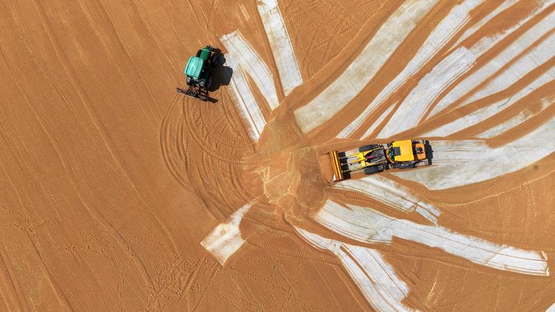 寧夏賀蘭:晾曬小麥