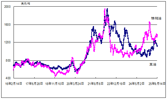 2. 原糖、小麥和豆油價格環比小幅下跌。國際糖料理事會原糖周均價每磅16.06美分(每噸354美元),環比跌2%,同比低14%;美國芝加哥商品交易所小麥和豆油最近期貨合約收盤周均價每噸分別為184美元和1115美元,環比均跌1%,同比分別低11%和高24%。
