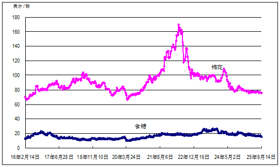 1.多數大宗農產品價格穩定。美國芝加哥商品交易所玉米和大豆最近期貨合約收盤周均價每噸分別為157美元和373美元,環比均基本持平,同比分別高4%和3%;泰國100%B級和5%破碎率大米曼谷離岸周均價每噸分別為387美元和372美元,環比均基本持平,同比分別低36%和37%;馬來西亞棕櫚油荷蘭鹿特丹港到岸周均價每噸1363美元,環比基本持平,同比高22%;國際棉花價格指數(SM級)每磅75.82美分(每噸1672美元),環比基本持平,同比低4%。