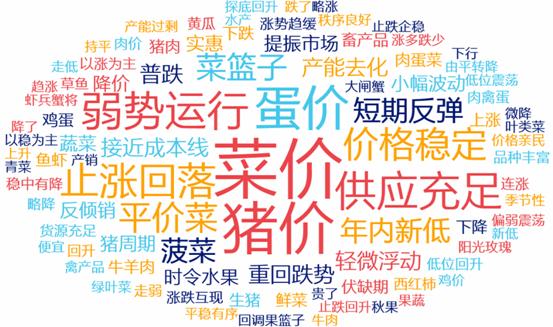 1.牛羊肉和雞蛋價格繼續上漲,豬肉價格略有下跌。豬肉批發市場周均價每公斤19.70元,環比跌0.3%,同比低27.2%;牛肉批發市場周均價每公斤65.51元,環比漲0.6%,同比高6.3%;羊肉批發市場周均價每公斤60.93元,環比漲0.3%,同比高2.8%;白條雞批發市場周均價每公斤17.49元,環比漲0.1%,同比低2.3%。雞蛋批發市場周均價每公斤7.86元,環比漲3.0%,同比低28.8%。